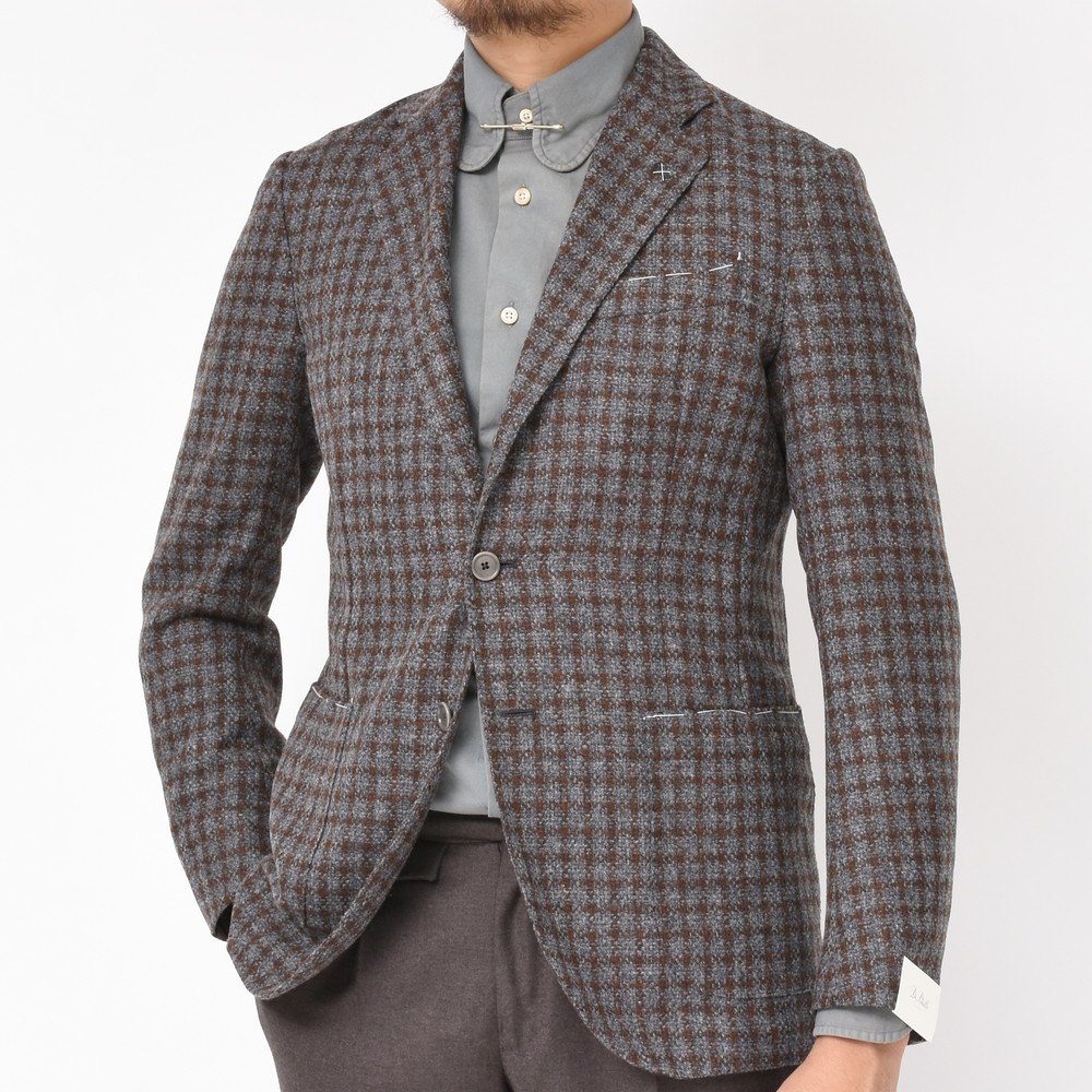 De Petrillo(デ ペトリロ)ウールコットンカシミアライトツィードグラフチェック3Bジャケット NUVOLA/ANACAPRI 175/300 『程良くスモーキーで程よくシックというナイスバランスです。