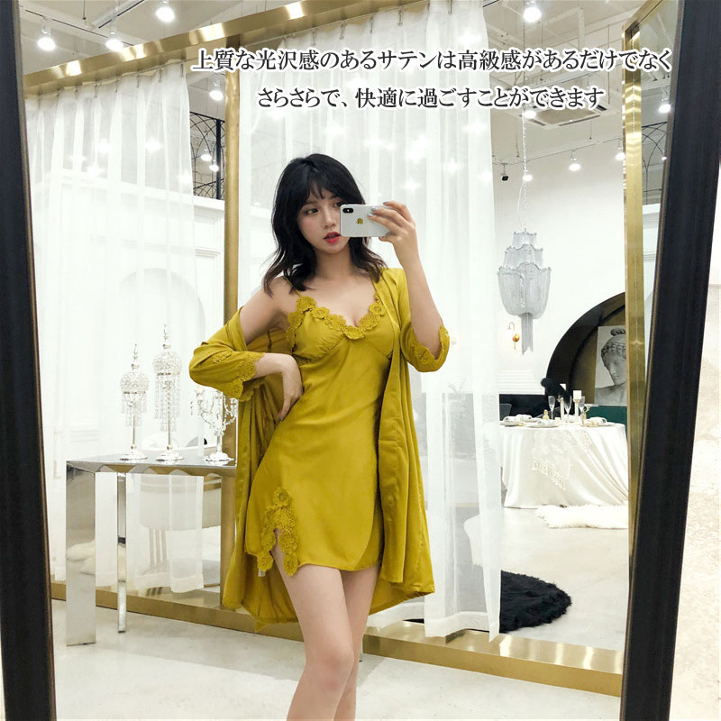 パジャマ ルームウェア 前開き ナイトガウン キャミソール ズボン ベビードール 上下セット ガウンセット セットアップ 4点セット 5点セット ナイトウェア セクシー 部屋着 女子 レディース ランジェリー 可愛い ネグリジェ さらさら 快適 シルクタッチ サテン 高級感 20代 30代 40代 50代 春夏 秋冬